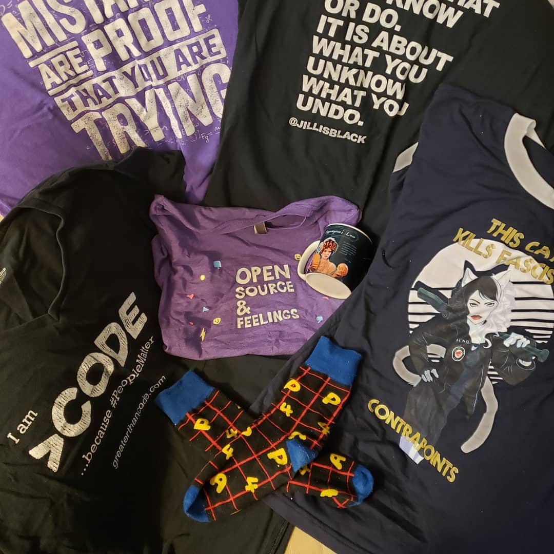 Special mentions from the above photo are the Project for Awesome socks. I will be recording a video for Project for Awesome this year and taking you all along with me so stay tuned for more information about that. I love fun socks and the Project for Awesome always has a good pack for purchase. Not shown here are a bunch of other P4A socks and a Decrease World Suck shirt. Another special mention is the @jillisblack shirt. Unfortunately the text got cut off but if you want one of your own you can check it out here. She has a bunch of good merch and her content always leaves me with something to consider. The only reason this doesn't count for me is that I don't consider myself terribly good at explaining it to random strangers. I mostly wear it to woke spaces where we can use it as a point for reflecting on our current lives and priorities.